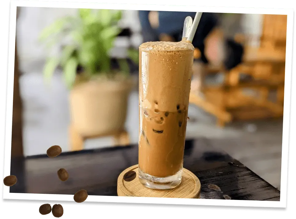 ベトナムコーヒーは「カフェ・フィン」と呼ばれる金属製の独自フィルターでコーヒーを濃く抽出し、甘く濃厚なコンデンスミルクを加えて作ります。そのため、甘みが強くコクのある味わいが特長です。