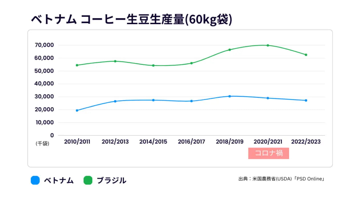 このように、ベトナムのコーヒーは供給量だけでなく品質向上が顕著で、新たなステージに入っているといえるでしょう。